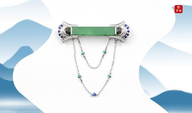 第二款胸针,设计更为独特,翡翠与黑钻、蓝宝石、沙弗莱等彩色宝石相互映衬,链条的设计增添了灵动之感。这宛如宋代园林中的曲径通幽,每一处转角都有不一样的风景。彩色宝石的运用,打破了传统翡翠饰品的单调,如同宋词中的豪放派与婉约派,刚柔并济,韵味无穷。佩戴此款胸针,行走间链条摇曳,宝石闪烁,仿佛是宋代词人在吟诗作对,灵动而富有诗意。